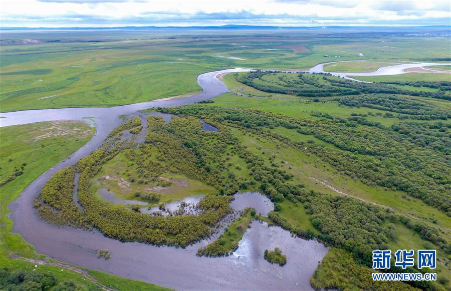 8月26日無人機拍攝的伊敏河。伊敏河流經(jīng)呼倫貝爾草原。新華社記者彭源攝