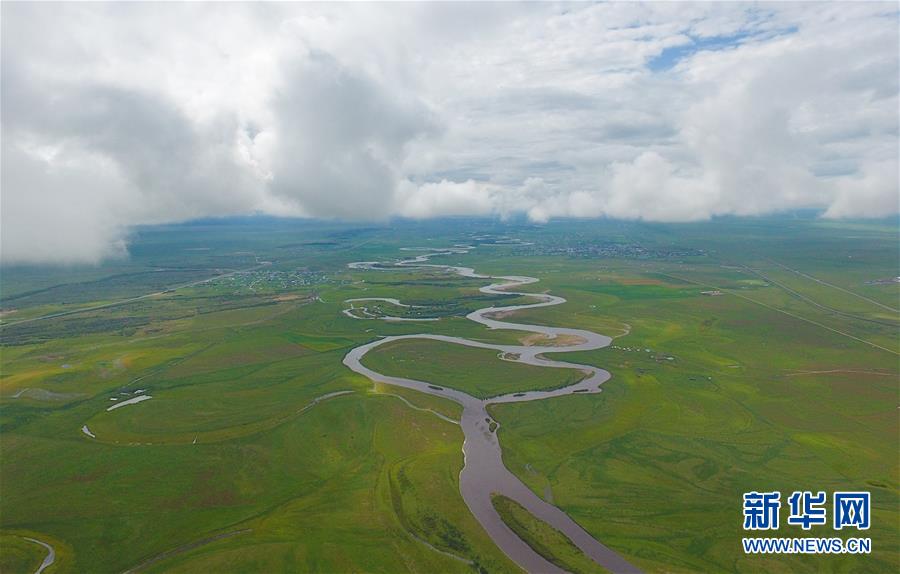 8月26日無(wú)人機(jī)拍攝的伊敏河。伊敏河流經(jīng)呼倫貝爾草原。新華社記者彭源攝