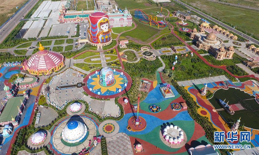 8月29日無(wú)人機(jī)拍攝的滿洲里市套娃廣場(chǎng)景區(qū)。滿洲里市位于呼倫貝爾大草原腹地。新華社記者彭源攝