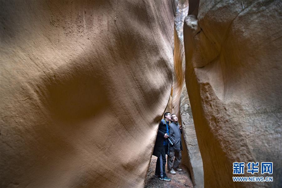 12月17日,游人在志丹縣雙河鎮(zhèn)毛項(xiàng)峽谷內(nèi)游覽。新華社記者陶明攝
