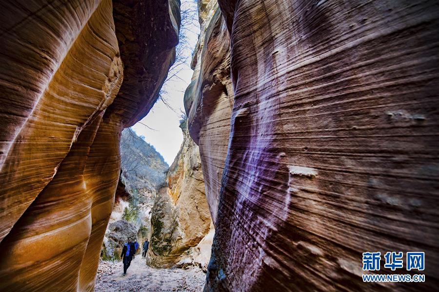 12月17日,游人在志丹縣雙河鎮(zhèn)毛項(xiàng)峽谷內(nèi)游覽。新華社記者陶明攝