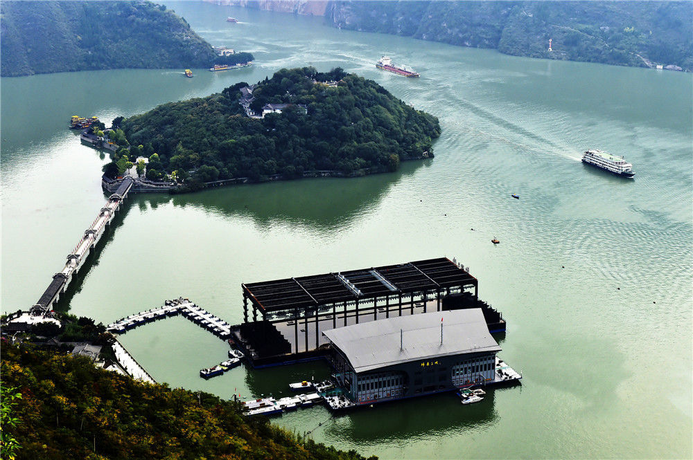 2019年11月3日,重慶,四面環(huán)水的“白帝城孤島”風(fēng)貌,各種豪華游輪陸續(xù)駛往寶塔坪旅游碼頭,供游客們登島參觀。