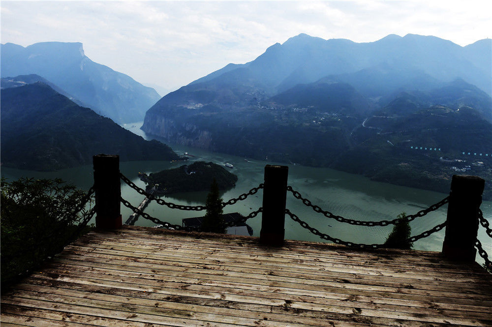 2019年11月3日,重慶,位于魚腹山懸崖、紫陽城遺址的觀景臺(tái)。