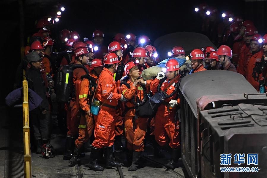 12月18日,救援人員轉(zhuǎn)運安全升井的被困人員。 當(dāng)日7時56分,經(jīng)過80多個小時的緊張救援,發(fā)生透水事故的川煤集團杉木樹煤礦13名被困人員全部安全升井。 新華社記者 薛玉斌 攝