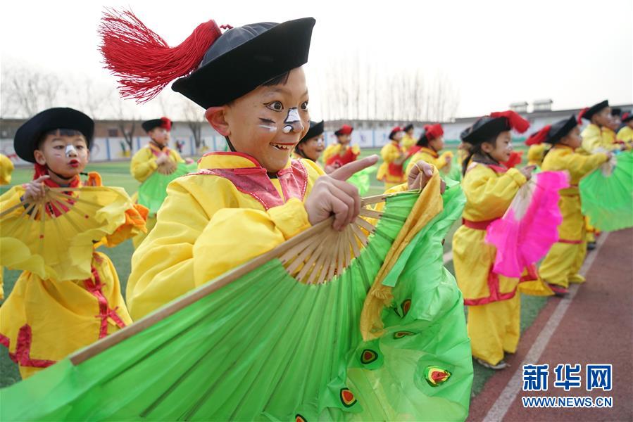 12月19日,河北省灤州市小閆營(yíng)小學(xué)學(xué)生在排練地秧歌。 國(guó)家級(jí)非遺地秧歌是冀東地區(qū)廣為流傳的一種民間藝術(shù)。近年來(lái),河北省灤州市響嘡街道小閆營(yíng)小學(xué)將地秧歌引入校園,組建學(xué)生興趣社團(tuán),并聘請(qǐng)地秧歌藝人定期為孩子們授課,讓孩子們近距離感受家鄉(xiāng)傳統(tǒng)文化的魅力。 新華社記者 牟宇 攝