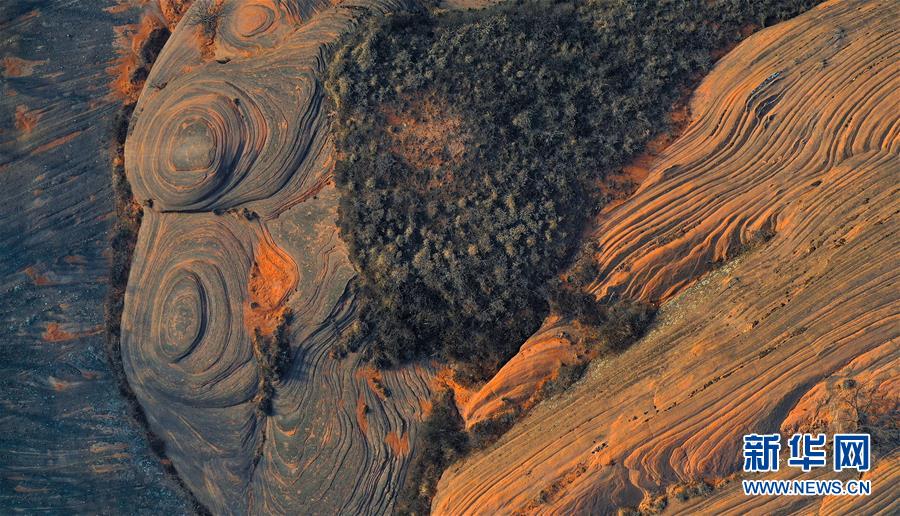 這是12月16日無(wú)人機(jī)拍攝的陜西省志丹縣杏河鎮(zhèn)丹霞地貌“螺旋谷”。 在陜西省延安市志丹縣杏河鎮(zhèn)有一片美麗的丹霞地貌,這里山巒起伏,溝壑縱橫,一些紅砂石呈現(xiàn)出大小不同的螺旋狀紋理,讓人嘆為觀止。 新華社記者陶明攝