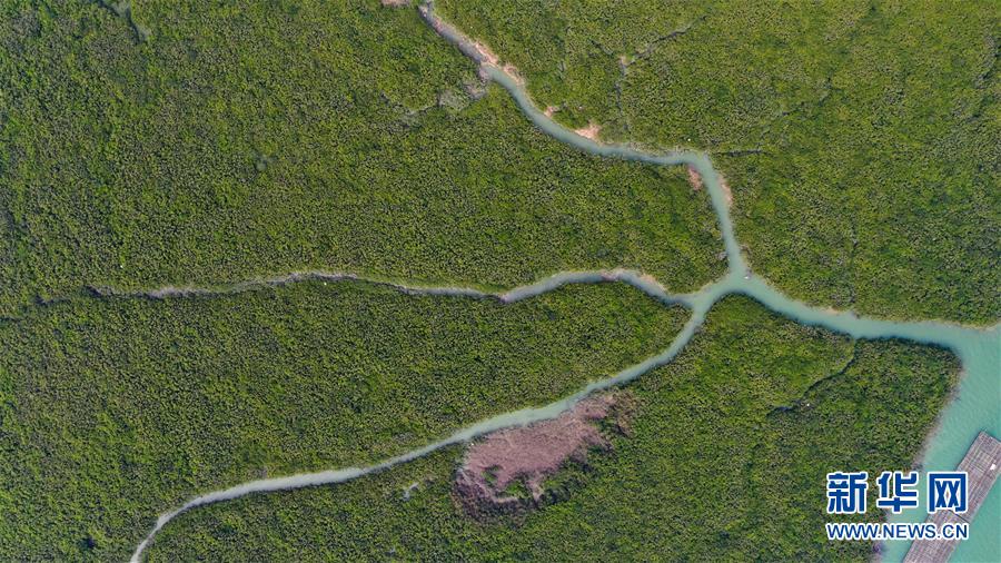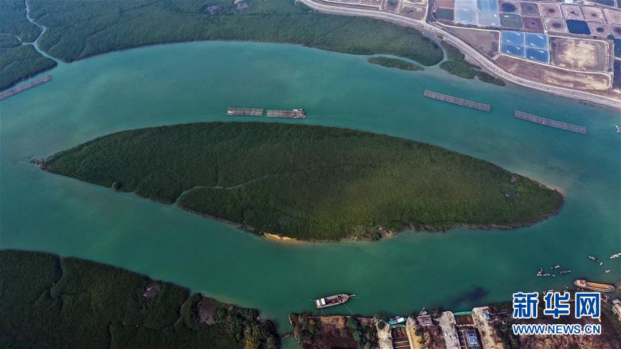 12月21日無(wú)人機(jī)拍攝的廣西合浦縣黨江鎮(zhèn)更螺圍出??诘奈r塘。冬日,廣西廉州灣海域風(fēng)光別致。新華社記者張愛(ài)林?jǐn)z