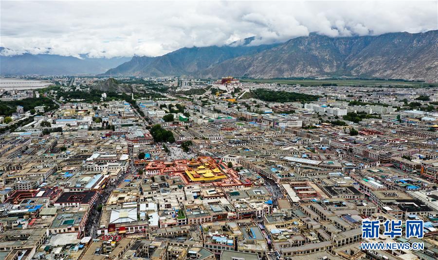 鳥瞰拉薩古城(8月10日無人機拍攝)。新華社記者晉美多吉攝