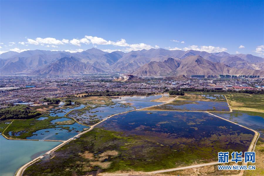 鳥瞰拉薩拉魯濕地(6月5日無人機拍攝)。新華社記者普布扎西攝