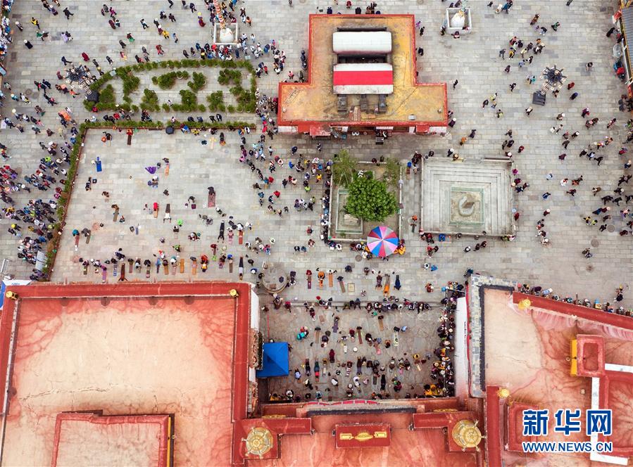 8月10日無人機拍攝的布達拉宮廣場一景。新華社記者王益亮攝