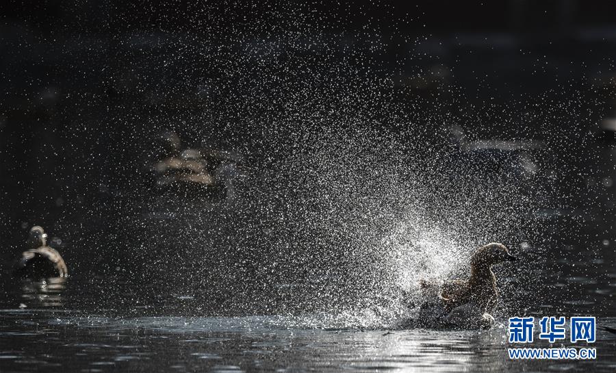 11月21日,候鳥在拉薩龍王潭公園水中嬉戲。新華社記者普布扎西攝