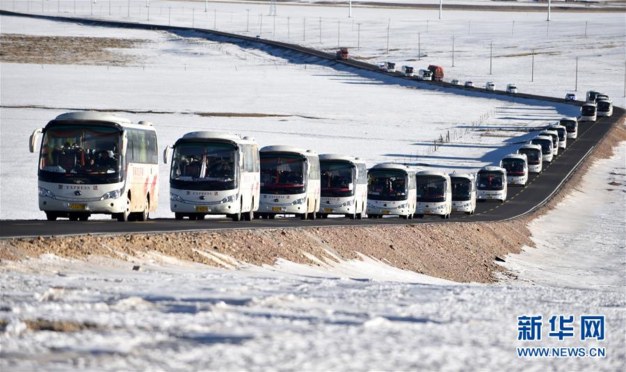 12月23日拍攝的西藏那曲市雙湖縣牧民的遷徙車隊。新華社記者覺果攝