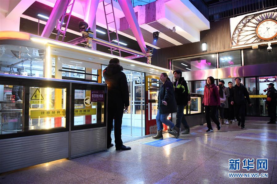 12月23日,前來體驗(yàn)的游客排隊(duì)進(jìn)入索道轎廂。新華社記者唐奕攝