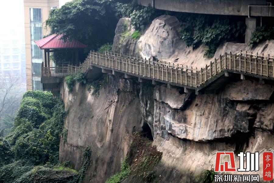 2019年1月15日,重慶市渝中區(qū)肖家灣,一小區(qū)在懸崖絕壁上修建一米寬的“懸空棧道”,方便小區(qū)市民出行,棧道離地40余米,走在上面令人膽戰(zhàn)心驚。