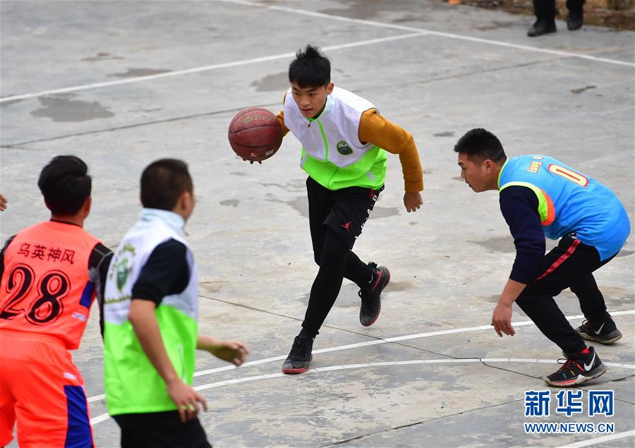 12月26日,澳門青年藝能志愿工作會的義教老師林家偉(右二)在籃球比賽中帶球突破。 新華社記者 王諾 攝