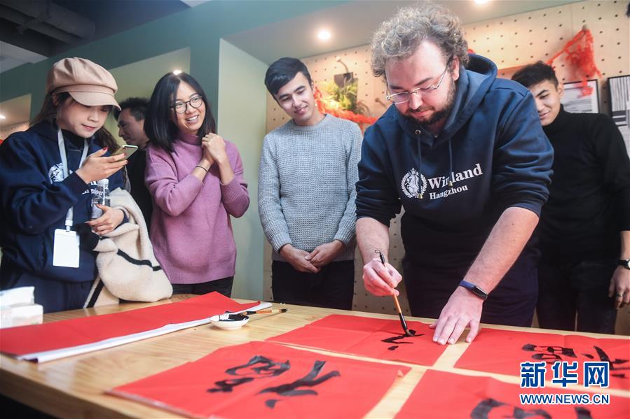 當(dāng)日,浙江省杭州市拱墅區(qū)上塘街道的瓜山新苑社區(qū)舉辦居民入住后的首個(gè)迎新年活動(dòng),社區(qū)內(nèi)的中外青年一起體驗(yàn)寫春聯(lián)、貼福字、包餃子等中國(guó)傳統(tǒng)習(xí)俗,在熱鬧喜慶的氣氛中迎接即將到來的新年。