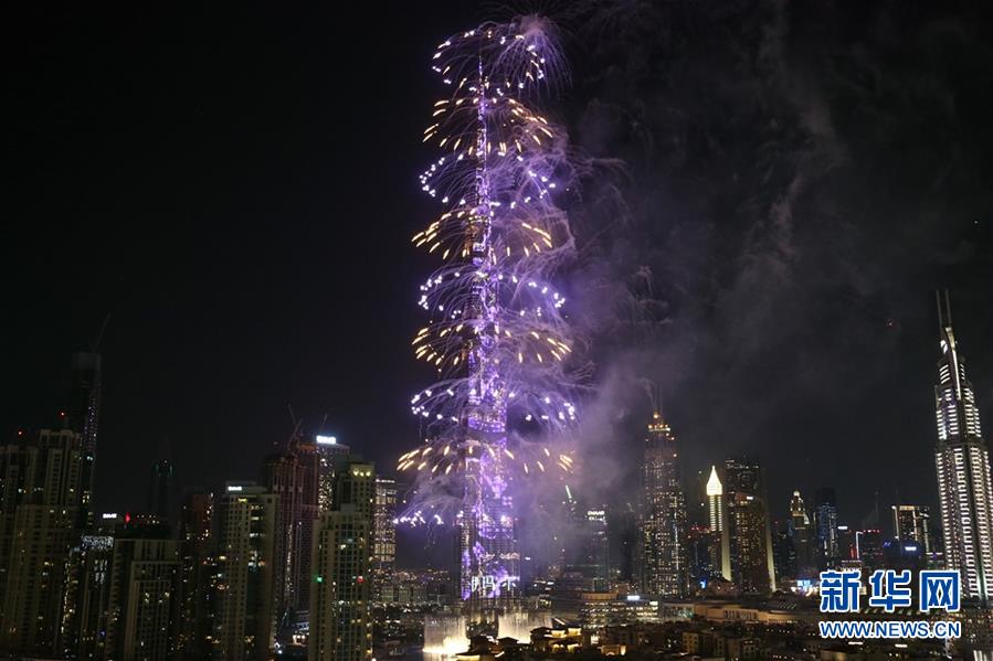 這是2020年1月1日拍攝的阿聯(lián)酋迪拜哈利法塔跨年煙火表演。新華社記者蘇小坡攝