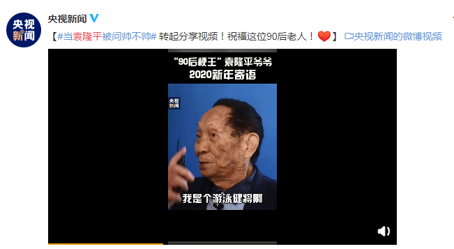 深圳新聞網(wǎng)訊 近日,央視新聞在其官方平臺(tái)下曬出一段袁隆平受采訪的視頻。值此2020年即將來(lái)臨之際,袁隆平先生在視頻中為年輕人們送來(lái)了新年寄語(yǔ),“首先注意身體,這是基礎(chǔ),我年輕時(shí)候喜歡鍛煉,我是個(gè)游泳健將啊,游泳年輕的時(shí)候是武漢市第一名啊”,并且在視頻中回答了一個(gè)記者的問(wèn)題,俘獲了無(wú)數(shù)網(wǎng)友的內(nèi)心。