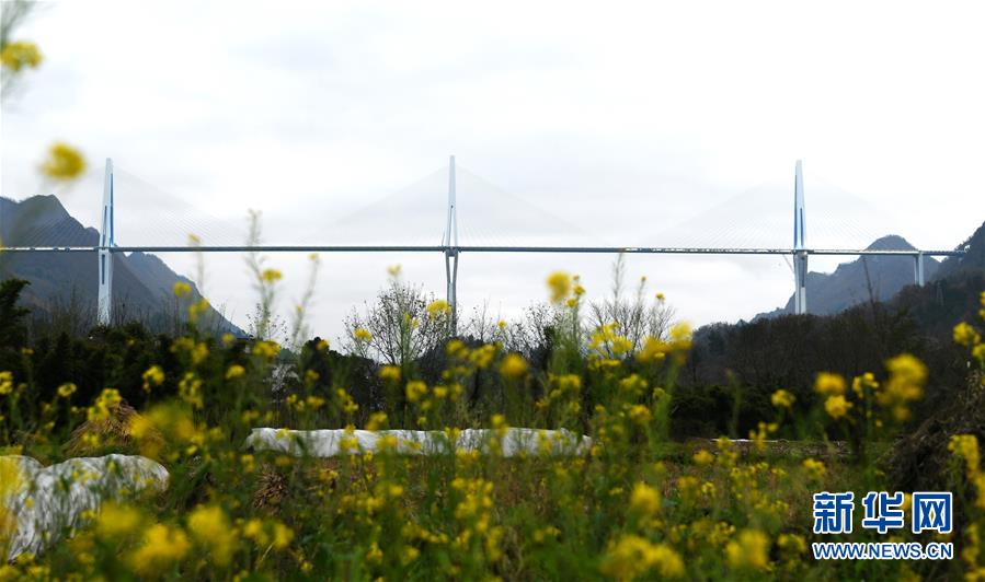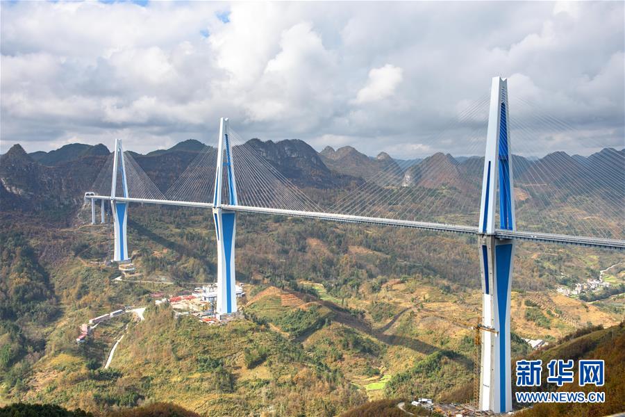 12月30日拍攝的貴州平塘特大橋橋塔。新華社記者楊文斌攝