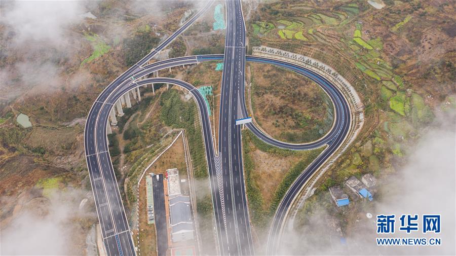這是紫望高速紫云南互通(無人機照片,1月1日攝)。2019年12月31日23時59分,貴州紫云至望謨高速公路、平塘至羅甸高速公路全線通車運營,紫云至望謨行車時間由2個半小時縮短為50分鐘、平塘至羅甸行車時間由2個半小時縮短至1小時。紫望高速項目起于紫云縣遼菁村,終于望謨縣平洞大道。全線總長74公里,總投資104.81億元。平羅高速全長93.478公里,項目起點位于平塘縣東北面的沖頭,于納散(地名)設(shè)置樞紐互通連接銀川至百色高速公路惠水至羅甸段。這兩條高速公路的通車運營對改善沿線居民生產(chǎn)生活條件、帶動旅游發(fā)展、助力當(dāng)?shù)孛撠毠杂兄匾饬x。新華社記者陶亮攝
