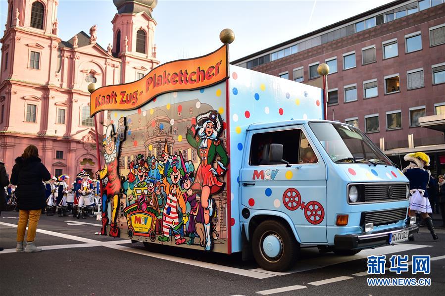 這是1月1日在德國(guó)美因茨新年游行活動(dòng)中拍攝的一輛彩車。新華社記者逯陽攝