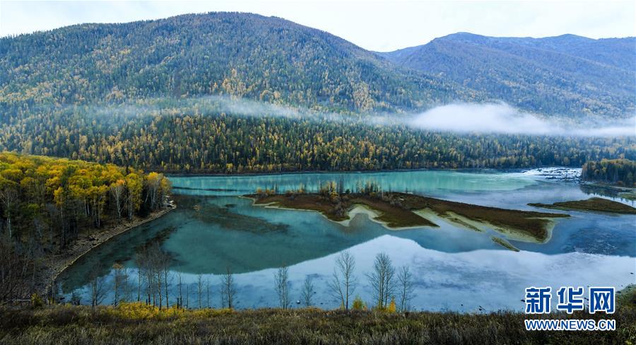 9月25日無人機拍攝的喀納斯景區(qū)風光。新華社記者王菲攝