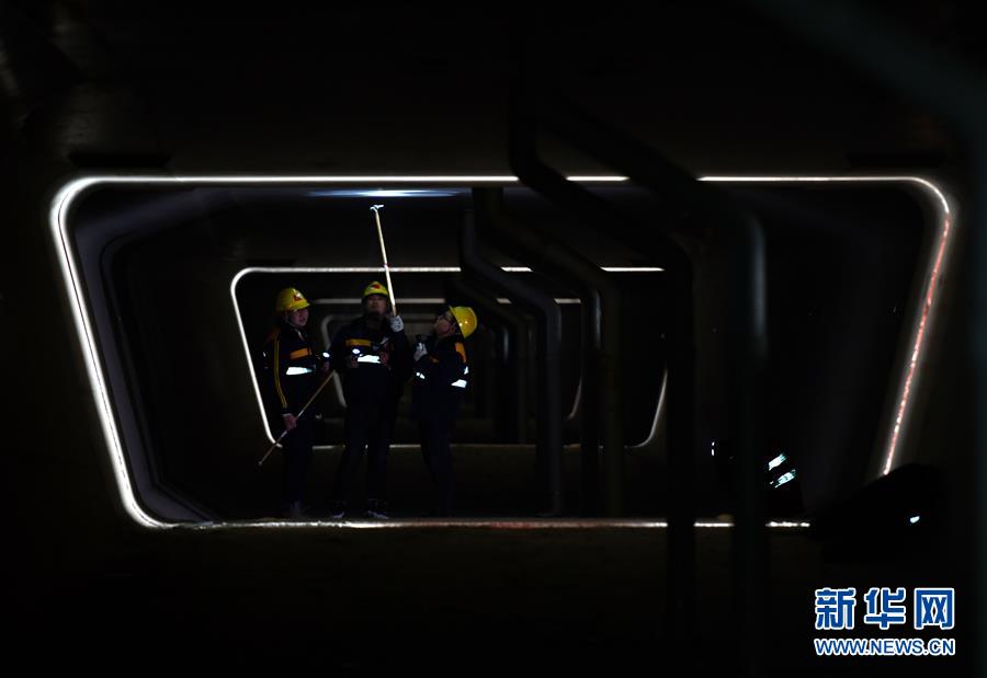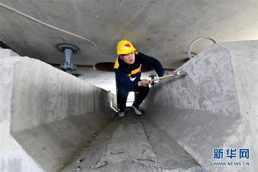1月3日,中國鐵路濟(jì)南局臨沂工務(wù)段工程技術(shù)員在沂河特大橋箱梁內(nèi)檢查。新華社記者 朱崢攝