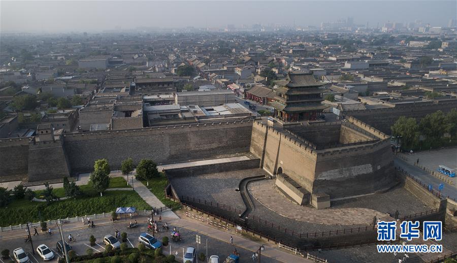 這是7月20日無人機(jī)拍攝的平遙古城北門。