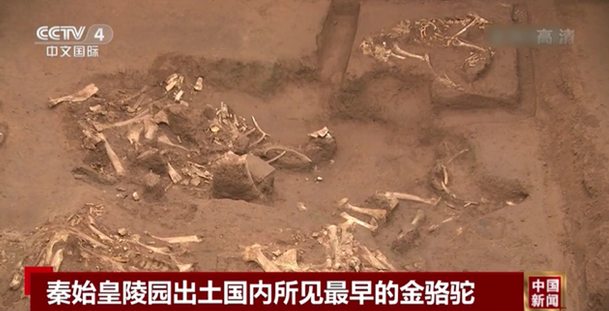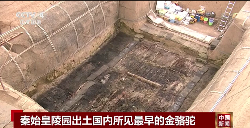 近日,秦始皇帝陵博物院公布最新考古成果:考古人員在秦陵在秦陵外城西側(cè)的陵區(qū),對一座編號為一號墓葬(QLCM1)的“中字形”墓葬進行了發(fā)掘,取得重要收獲。該墓為目前發(fā)現(xiàn)秦代規(guī)模最大、等級最高、保存最完好的大型墓葬,填補了秦代高等級墓葬的空白。出土了目前國內(nèi)所見最早的單體金駱駝。
