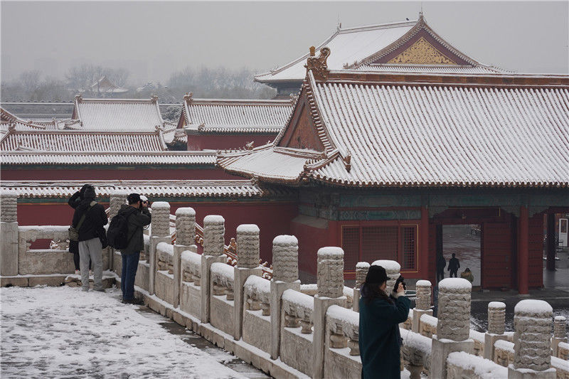 2019年11月30日,北京,初雪過(guò)后,故宮美景如畫(huà),吸引大批游客前來(lái)“打卡”。