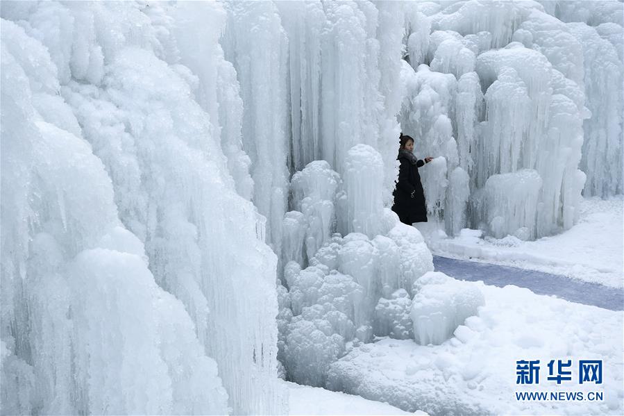 這是1月7日拍攝的賀蘭山巖畫景區(qū)內的冰瀑景觀。 新華社記者 王鵬 攝