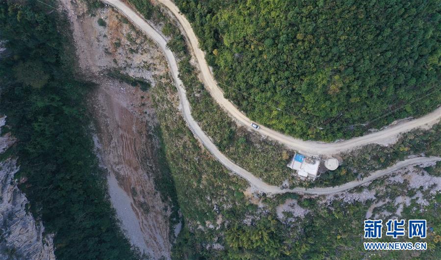 八好村駐村第一書記韋德王駕車前往群眾家中,公路的另一側是兩百多米深的懸崖(2019年12月16日攝)。新華社記者黃孝邦攝