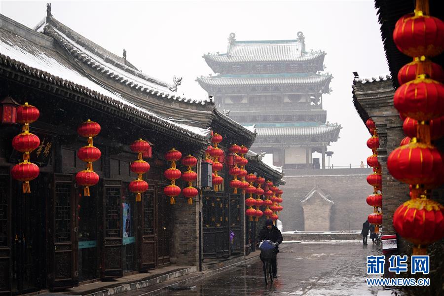 當(dāng)日,山西省平遙縣迎來降雪,雪中的平遙古城銀裝素裹,美景如畫。平遙古城是目前中國保存最完整的古代縣級(jí)城池之一,1997年被列入世界文化遺產(chǎn)名錄。