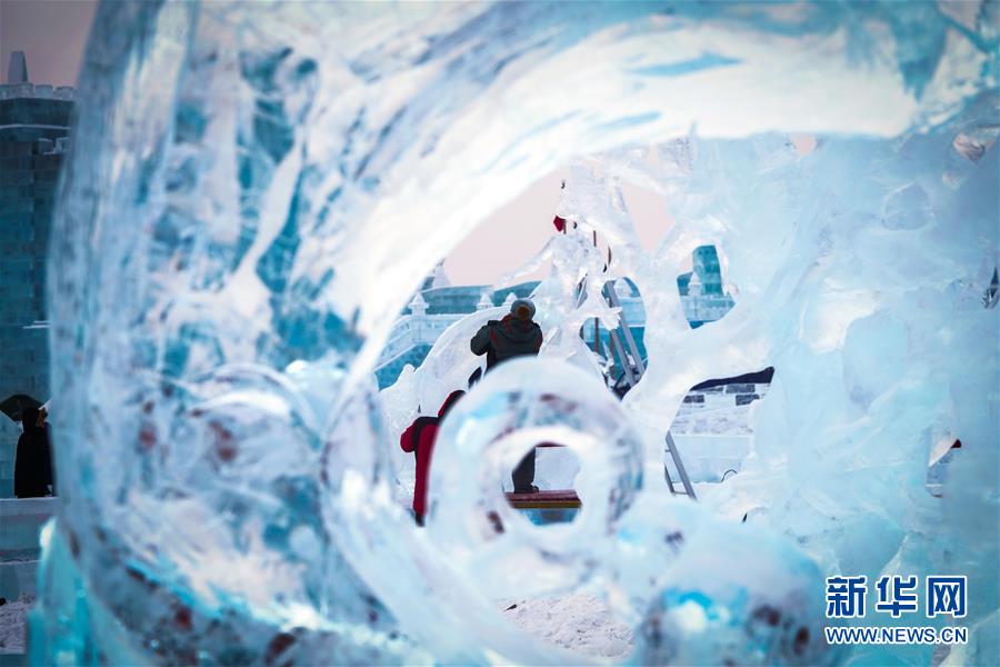 冰雕師在哈爾濱冰雪大世界內(nèi)雕刻出主題各異的冰雕作品(1月8日攝)。新華社記者王松攝