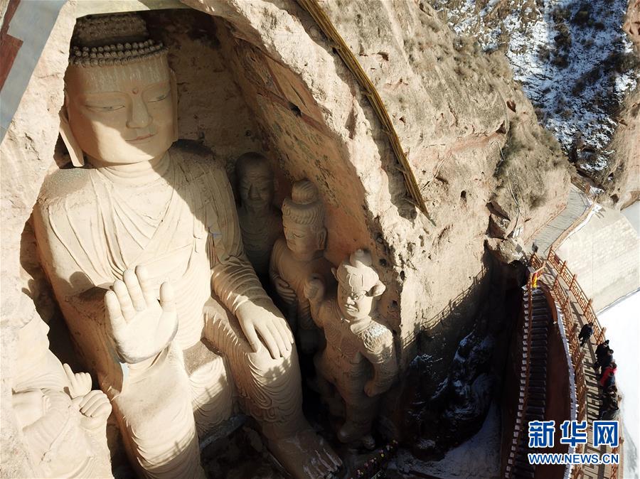 12月26日,游客在麥積山石窟參觀游覽。新華社記者馬寧攝