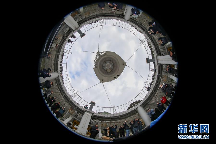 1月11日,專家學者對“中國天眼”進行考察(檢修期間拍攝)。新華社記者歐東衢攝