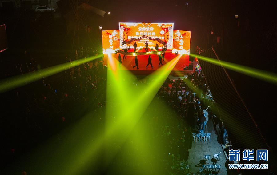 1月14日,杭州市余杭區(qū)中泰街道中橋村的文化公園內(nèi)在進(jìn)行“我們的村晚”舞龍表演,吸引了大批當(dāng)?shù)匕傩沼^看(無人機(jī)照片)。臨近春節(jié),浙江省杭州市余杭區(qū)中泰街道各村社的文化禮堂紛紛上演“我們的村晚”。老百姓自編、自導(dǎo)、自演為主的“土味”聯(lián)歡會因接地氣、親情濃而深受當(dāng)?shù)匕傩盏南矏郏蔀楫?dāng)?shù)剜l(xiāng)村百姓的新年迎春“文化大餐”。近年來,中泰街道以文化振興助推鄉(xiāng)村振興。目前,中泰街道下屬各村陸續(xù)建成文化禮堂7個、社區(qū)文化家園2個,努力培育和挖掘出一批鄉(xiāng)土文化人才及原創(chuàng)作品,2019年全年開展各類鄉(xiāng)村社區(qū)惠民文體活動累計180余場次。新華社記者徐昱攝