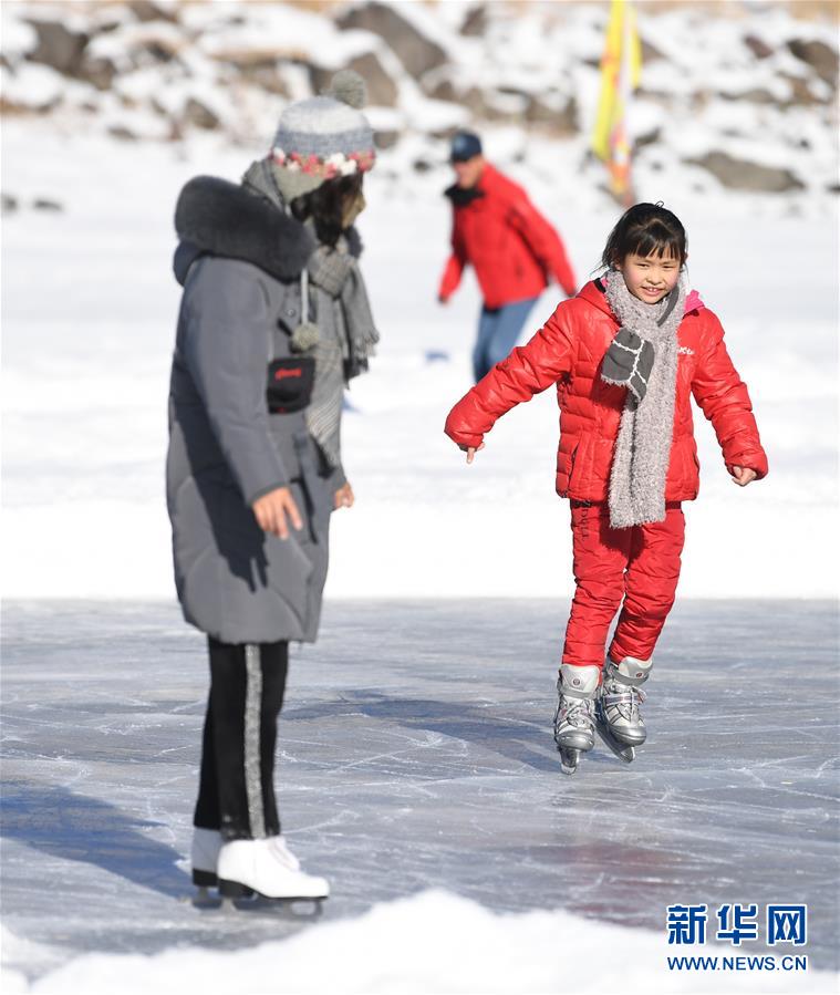 1月18日,游客在新疆天池景區(qū)滑冰。新華社記者 沙達(dá)提 攝