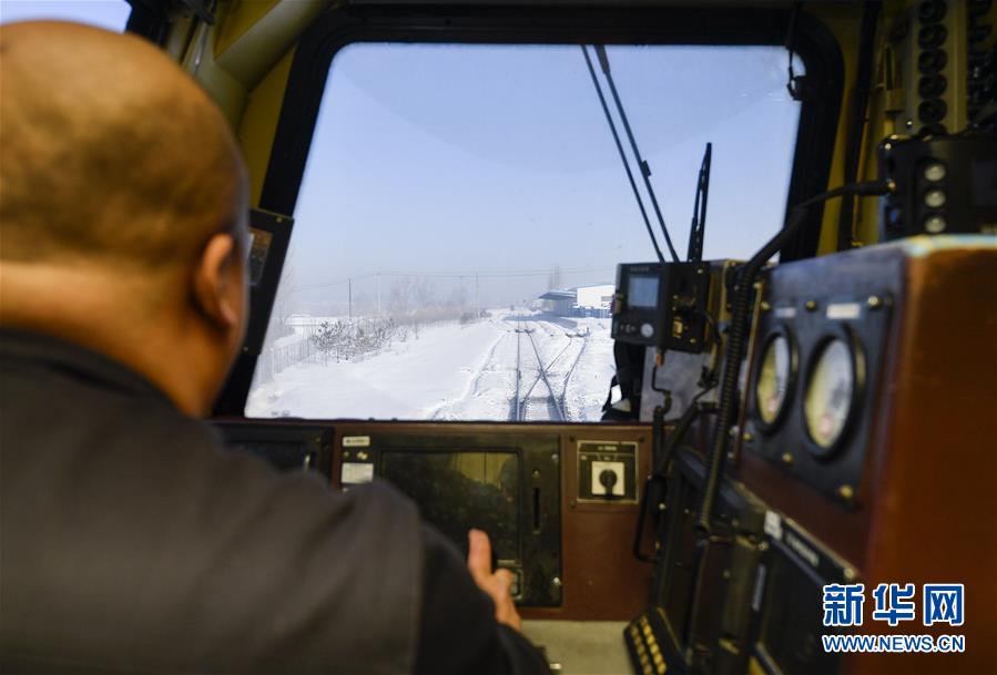 臨近送水地點(diǎn),送水員黃衛(wèi)東指揮列車前往??奎c(diǎn)(1月17日攝)。新華社記者許暢攝