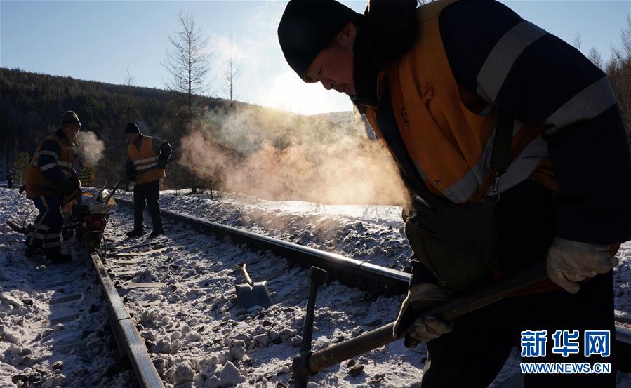 1月8日,西羅奇維修工隊(duì)工作人員在嫩林線497公里處進(jìn)行維修作業(yè)。新華社記者王毓國攝