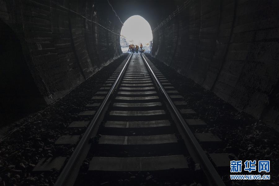 通化通信車間無線工區(qū)鐵路通信工人進(jìn)入全長7088米的灣灣川隧道作業(yè)(1月10日攝)。2020年春運(yùn)1月10日拉開帷幕。新華社記者許暢攝