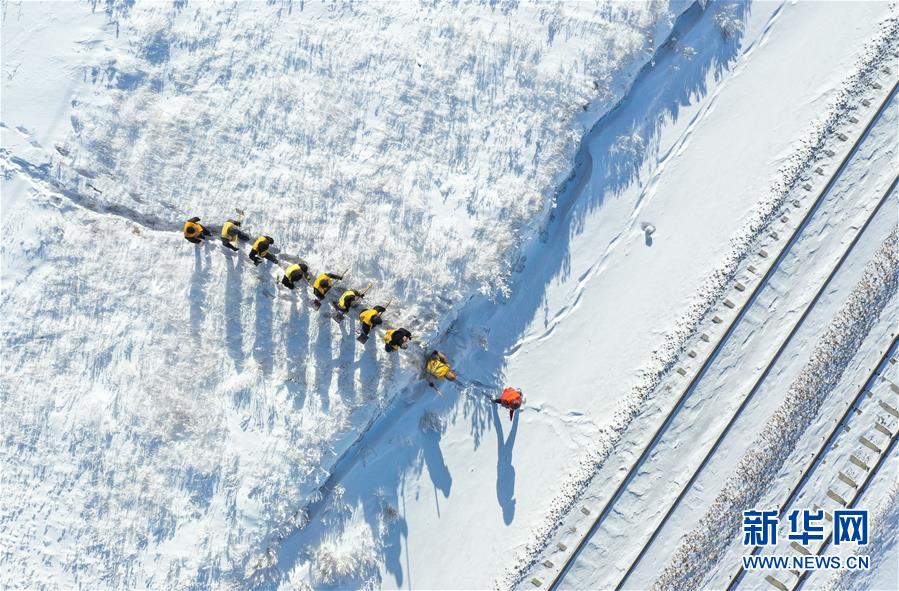 1月13日,白音庫倫綜合維修車間線路養(yǎng)護(hù)職工前往作業(yè)點(diǎn)。新華社記者劉磊攝