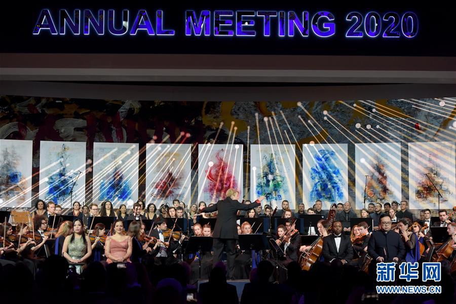 1月20日,在瑞士達(dá)沃斯,藝術(shù)家在世界經(jīng)濟(jì)論壇2020年年會(huì)開(kāi)幕音樂(lè)會(huì)上表演。 新華社記者 郭晨 攝