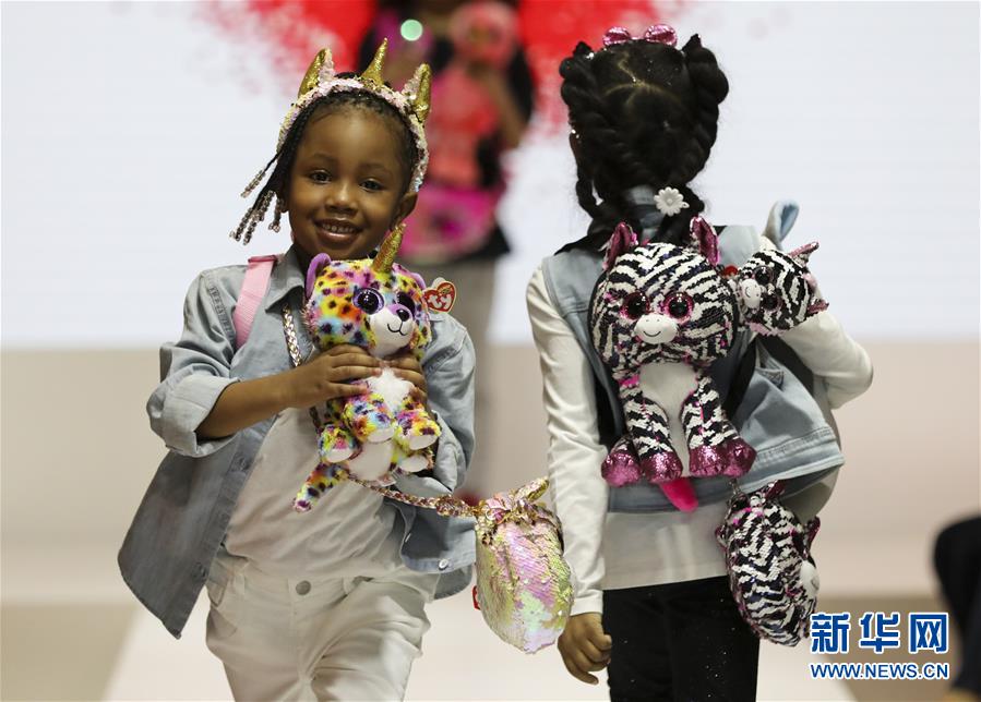 2月22日,兒童模特在美國(guó)紐約舉行的2020紐約國(guó)際玩具展上展示新款毛絨玩具。新華社記者王迎攝