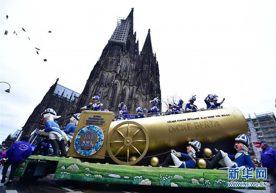 2月24日,在德國(guó)科隆,人們乘坐花車(chē)參加“玫瑰星期一”大游行。