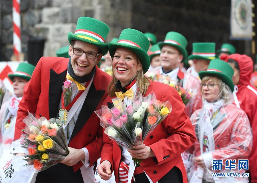 2月24日,在德國(guó)科隆,人們參加“玫瑰星期一”大游行。新華社記者 逯陽(yáng) 攝