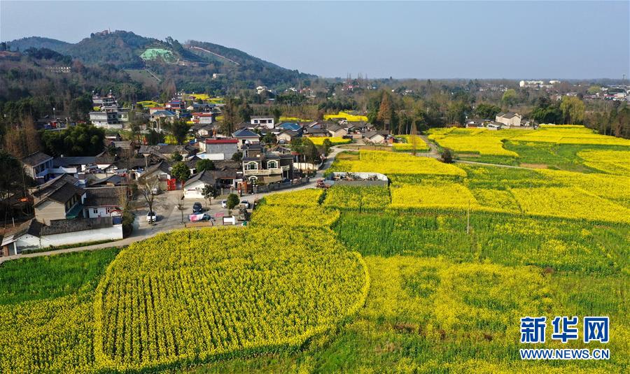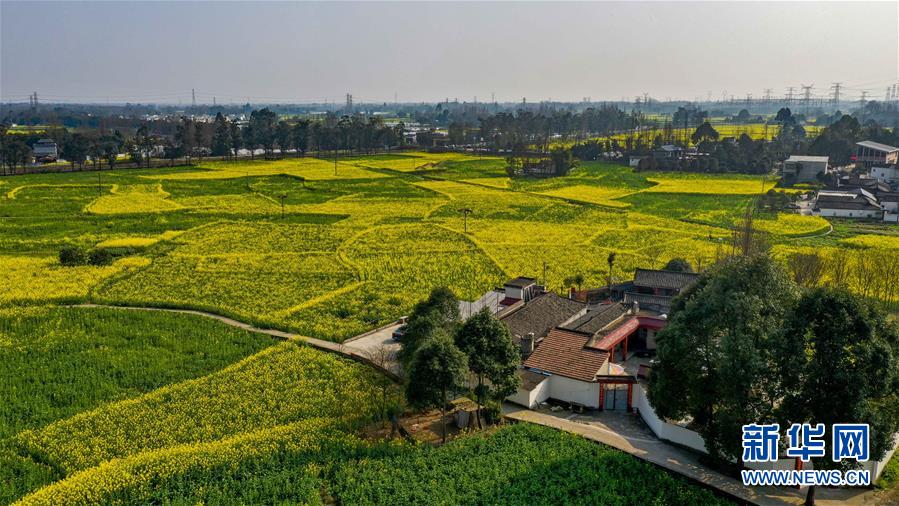 2月25日在四川省崇州市拍攝的油菜花田(無人機(jī)照片)。 新華社記者 王曦 攝