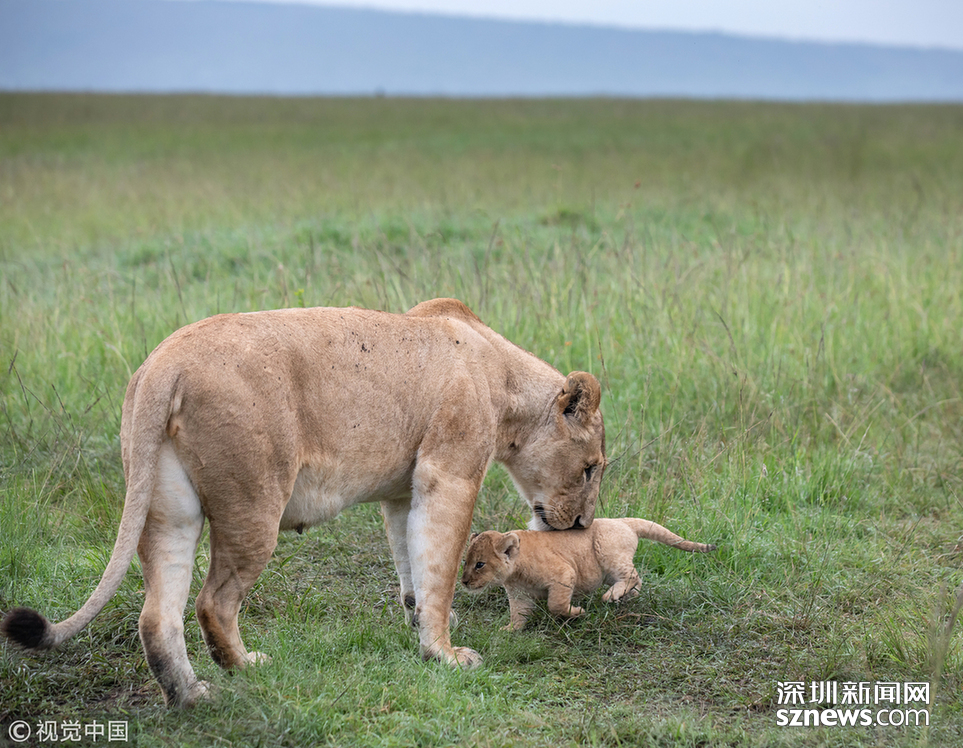 英國(guó)野生動(dòng)物攝影師Paul Goldstein在肯尼亞的馬賽馬拉拍到了一頭小獅子被媽媽教訓(xùn)的場(chǎng)面。
