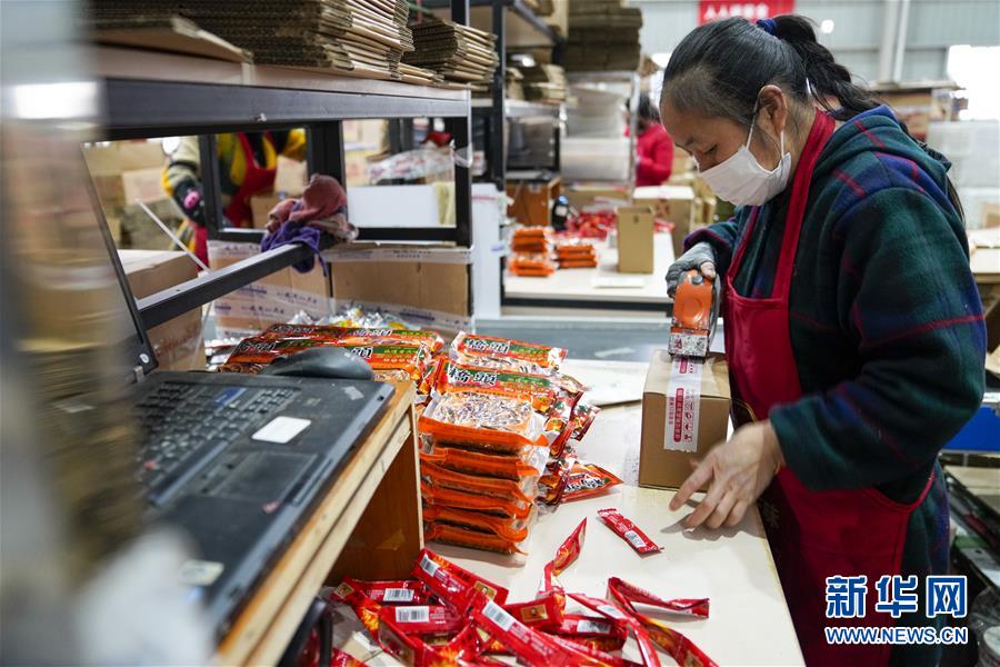 2月27日,在秀山(武陵)現(xiàn)代物流園區(qū)的電商云倉內(nèi),工人在打包包裹。地處重慶市秀山縣的秀山(武陵)現(xiàn)代物流園區(qū),是渝湘黔三省市交界地區(qū)的區(qū)域性物流中心。重慶市秀山縣在做好新冠肺炎疫情防控工作前提下,當(dāng)?shù)卣e極幫助電商、物流企業(yè)解決招工、運(yùn)輸、銷售等方面的實(shí)際問題,推動(dòng)秀山(武陵)現(xiàn)代物流園區(qū)快速進(jìn)入全面復(fù)工復(fù)產(chǎn)階段。據(jù)介紹,隨著物流園區(qū)的電商和物流企業(yè)全面復(fù)工復(fù)產(chǎn),既滿足當(dāng)?shù)厝罕姷奈镔Y供應(yīng),又幫助當(dāng)?shù)剞r(nóng)產(chǎn)品通過電商平臺(tái)實(shí)現(xiàn)快速銷售。新華社記者劉潺攝