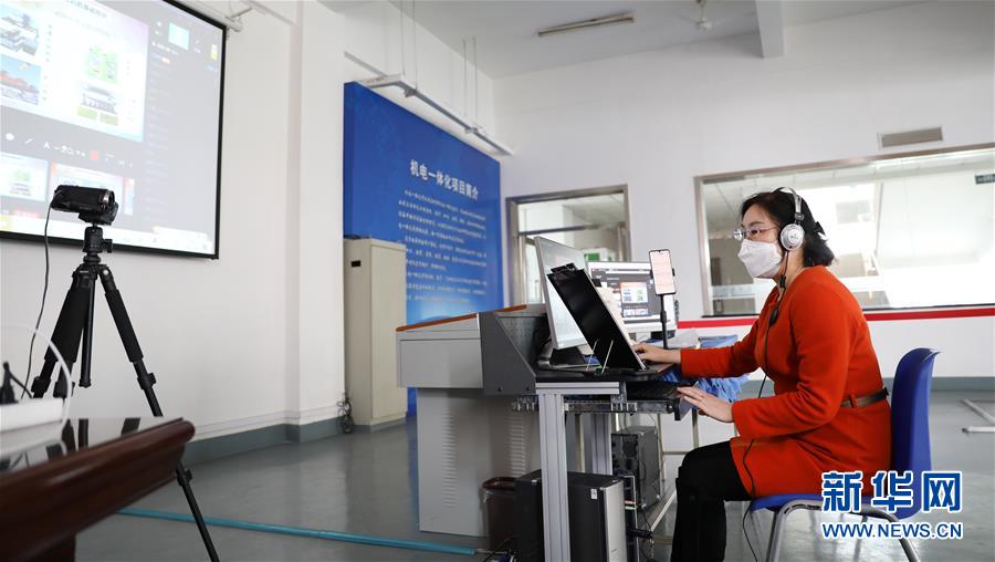 3月4日,職教城內(nèi)的鞍山市技師學(xué)院的王曉娜老師為學(xué)生進(jìn)行機(jī)電一體化網(wǎng)絡(luò)授課。遼寧省鞍山市職教城內(nèi)的各類職業(yè)教育學(xué)校從3月2日恢復(fù)網(wǎng)絡(luò)授課以來,教師們?cè)O(shè)置了豐富多彩的課程,提高1萬余名學(xué)生線上學(xué)習(xí)的積極性。新華社記者 姚劍鋒 攝